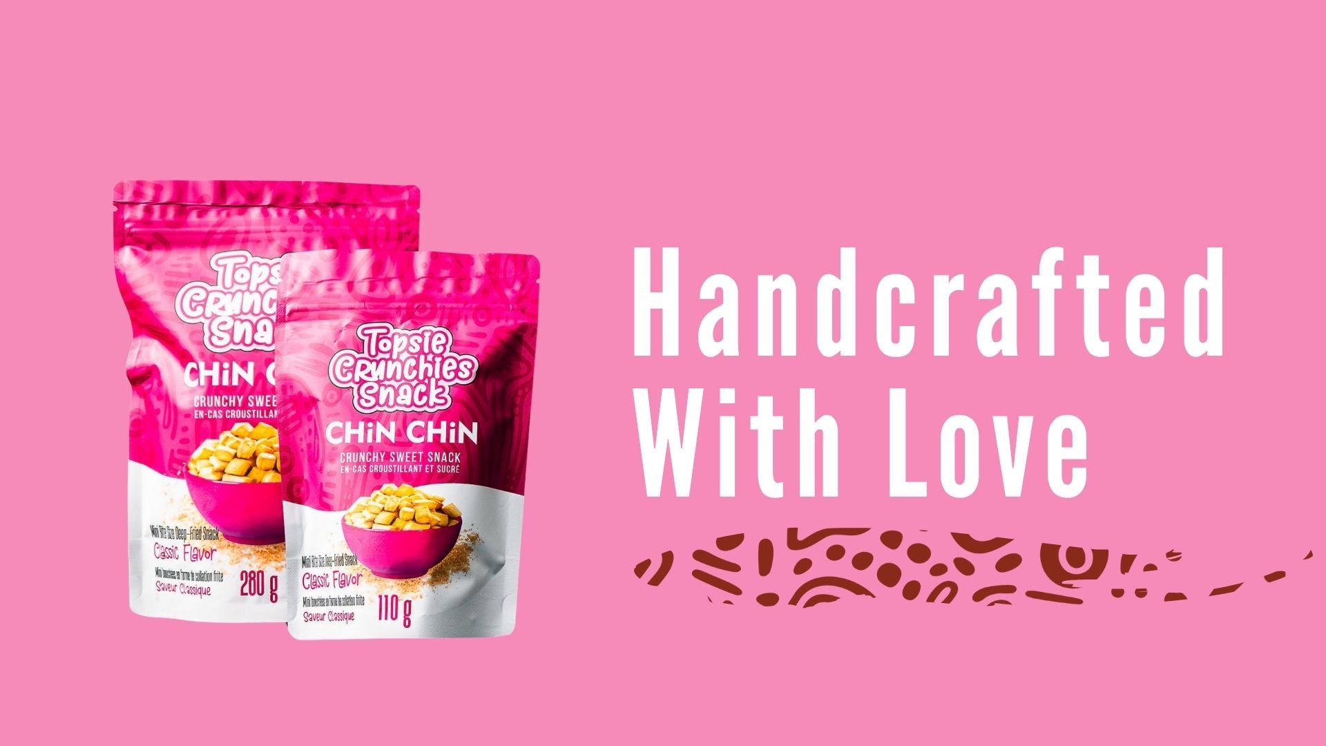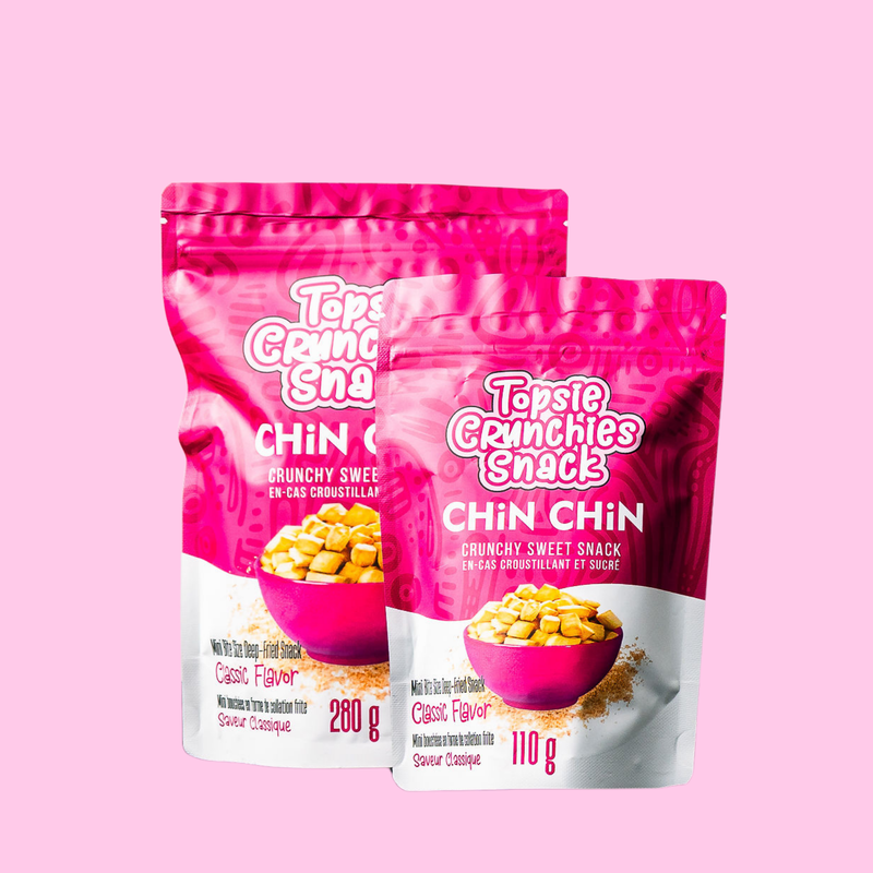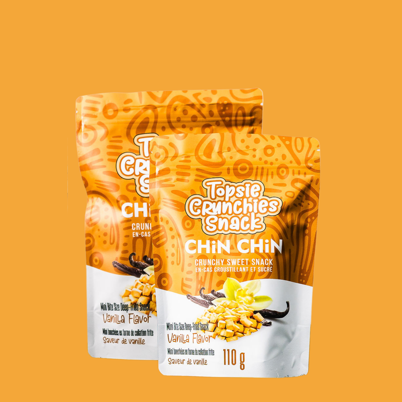 Rooted in rich African traditions, Topsie Crunchies brings generations of culinary artistry straight to your hands. Our signature CHIN-CHIN is Nigeria’s favorite crunchy snack — a homemade delight mixed to golden perfection for that irresistible crunch.